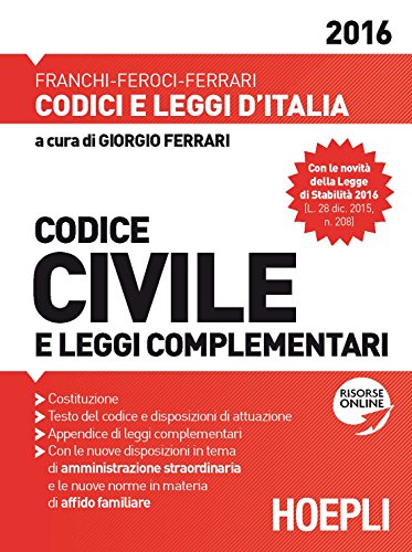 Con le più recenti pronunce della Corte Costituzionale e i principali nuovi provvedimenti di cui si è tenuto conto: L. 28 dic. 2015, n. 208: Legge di stabilità 2016; D.M. 11 dic. 2015: Modifica del tasso di interesse legale; L. 1 dic. 2015, n. 194: Disposizioni per la tutela e la valorizzazione della biodiversità di interesse agricolo e alimentare; L. 29 nov. 2015, n. 189: Conversione del D.L. 1 ott. 2015, n. 154, recante misure urgenti in materia economico-sociale; D.lgs. 16 nov. 2015, n. 180: Attuazione della direttiva 2014/59/UE in tema di risanamento degli enti.